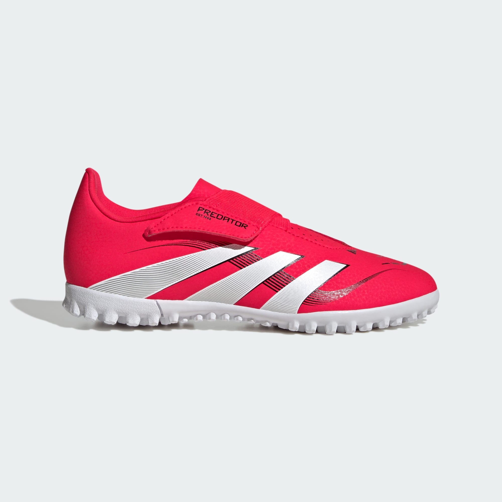 Entrá en cada partido sabiendo que anotarás con los botines adidas Predator Club para jóvenes, diseñados para marcar goles. Incorporan una tira ajustable ancha de cierre por contacto y un forro interno de tela suave en el exterior que brinda una sensación de comodidad. Dale la vuelta y encontrarás una suela de caucho diseñada para jugar con precisión en canchas de pasto sintético. Este producto contiene al menos un 20 % de material reciclado. Utilizando materiales reciclados disminuimos los residuos, nuestra dependencia de los recursos finitos y la huella que generan los productos que fabricamos.