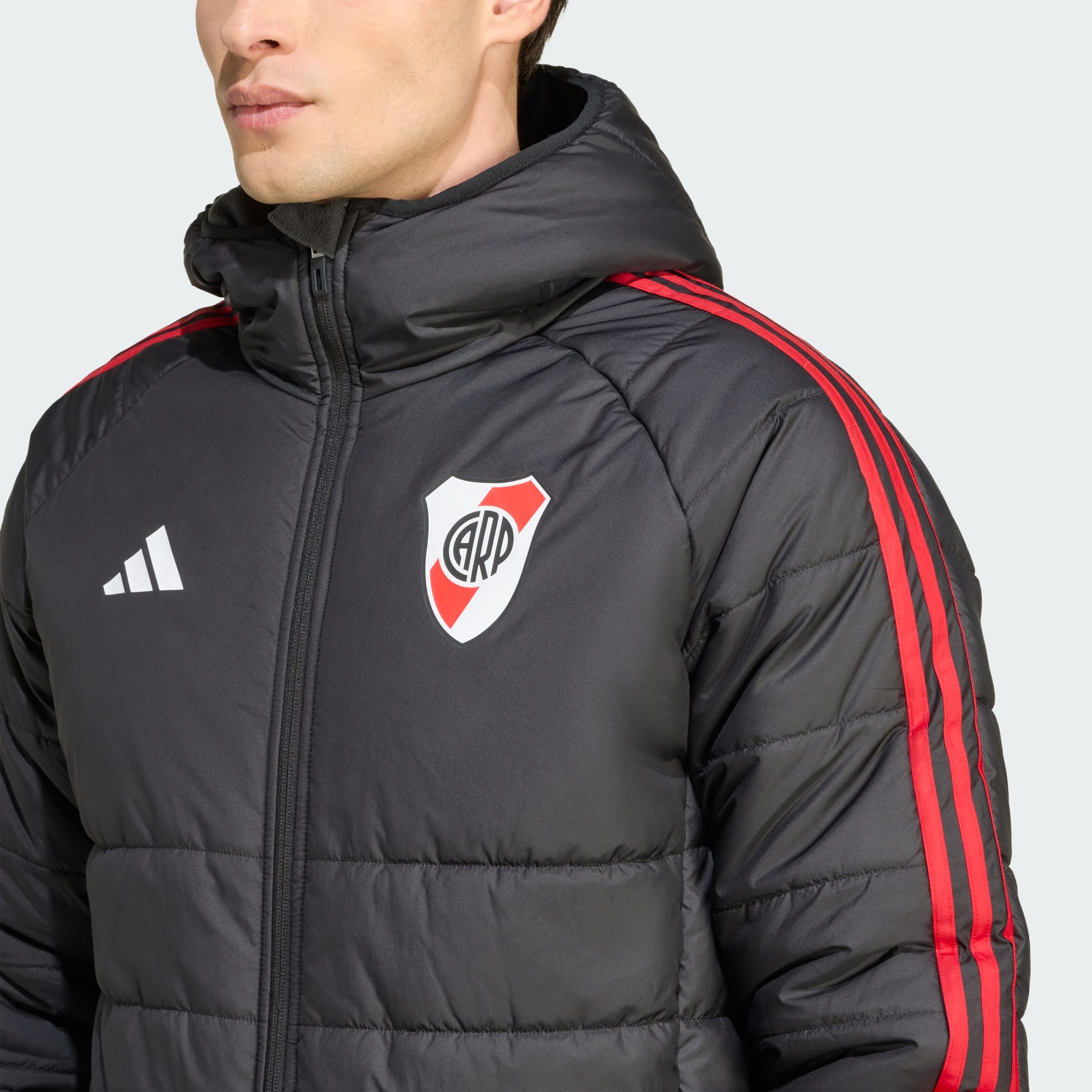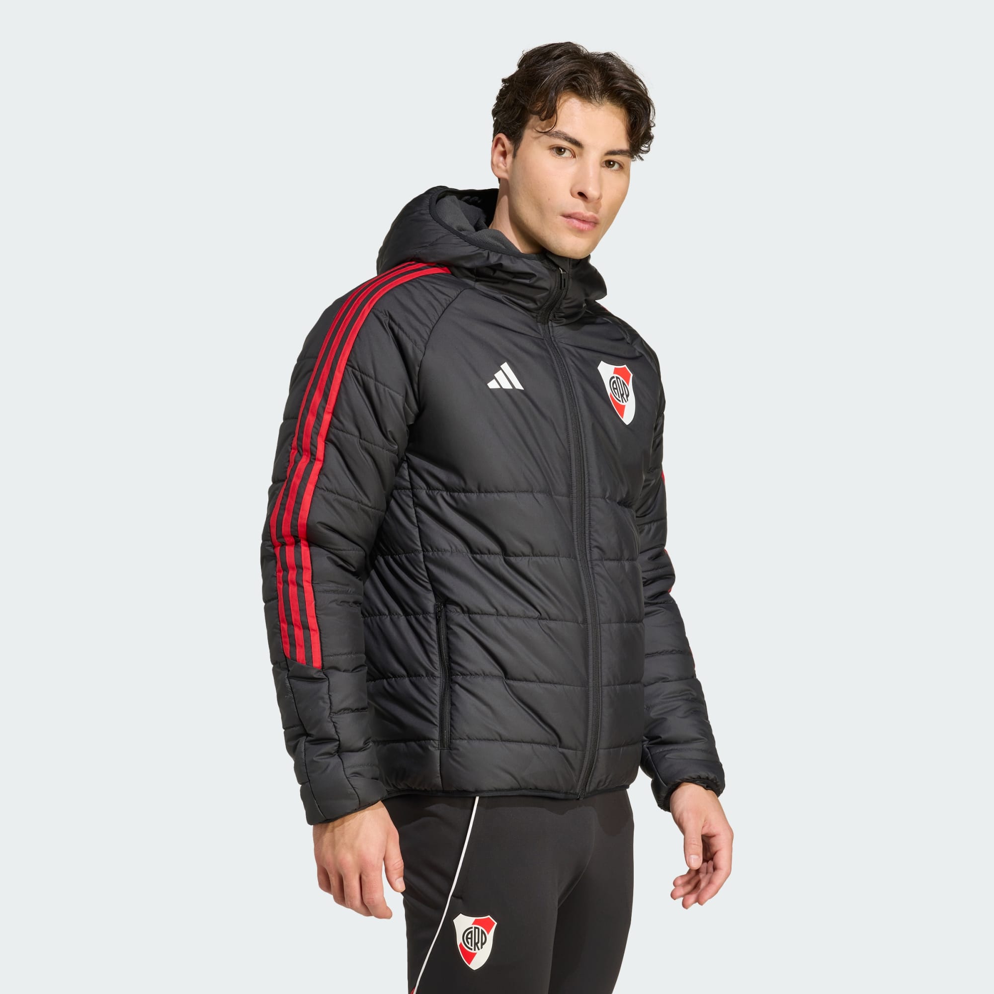Ya sea para ver a tus héroes de River Plate o para salir con tus amigos, vas a querer tener esta campera de fútbol adidas en tu colección. El aislamiento térmico ligero te mantiene abrigado sin agobiarte, mientras que la resistente capa exterior y la capucha ayudan a protegerte del viento y la lluvia. El escudo de Los Millonarios en el pecho deja bien clara tu pasión.