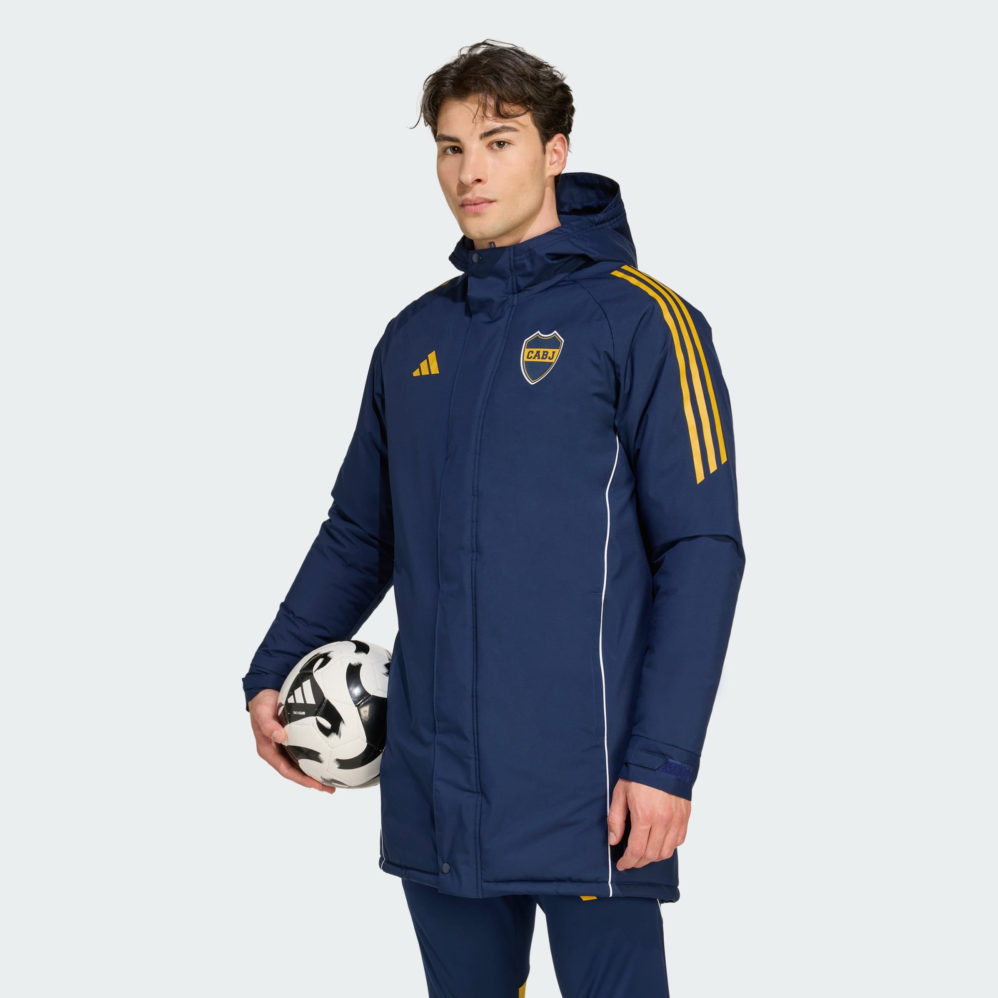 Ya sea entre ejercicios de entrenamiento o mirando el partido desde la tribuna, abrigate con esta parka de Boca Juniors de adidas. Forma parte de la gama de entrenamiento del club, y te mantendrá abrigado y seco gracias a su grueso relleno, su acabado resistente al agua y sus puños ajustables. Mientras te resguardás del clima, el escudo serigrafiado del club iluminará tu pasión por el fútbol.