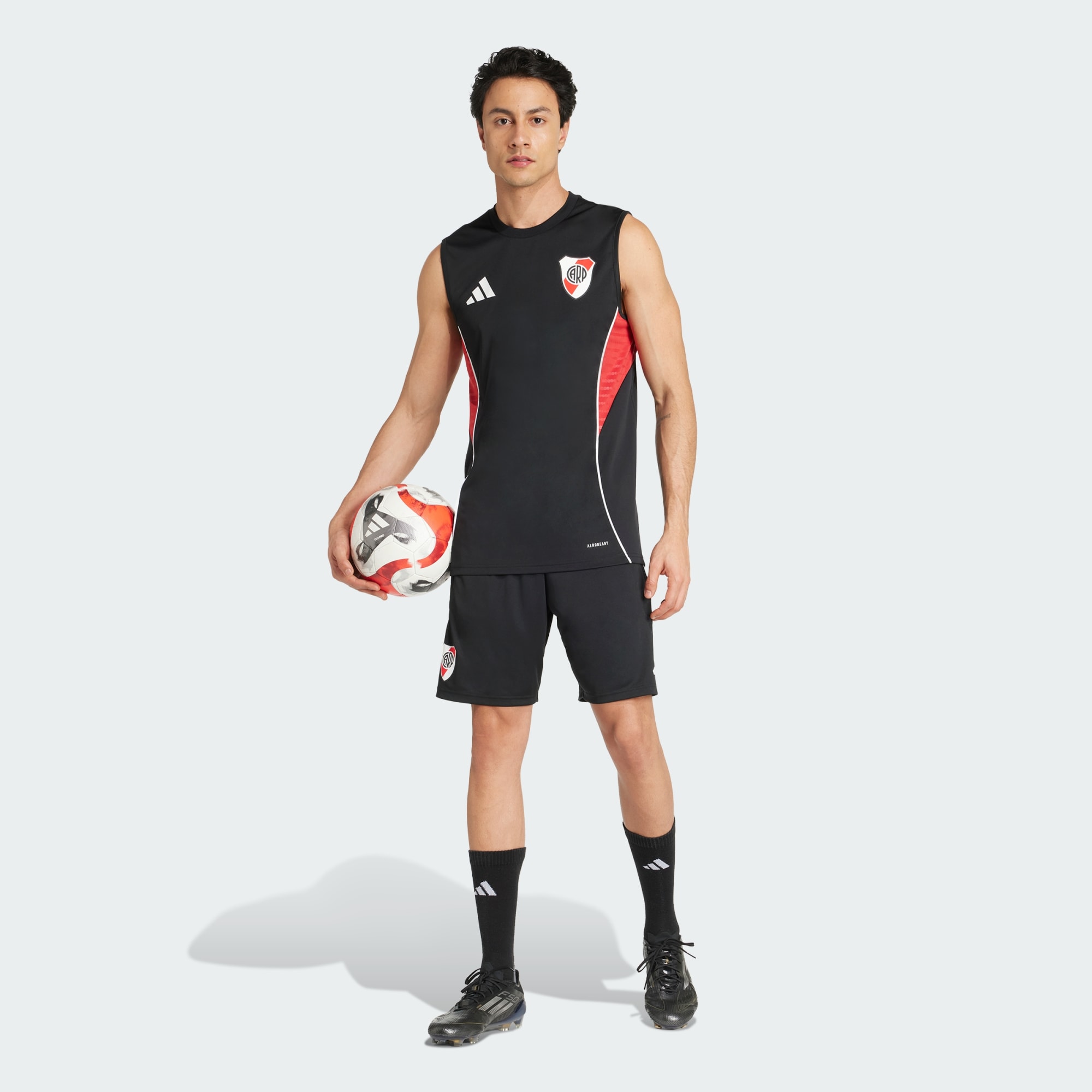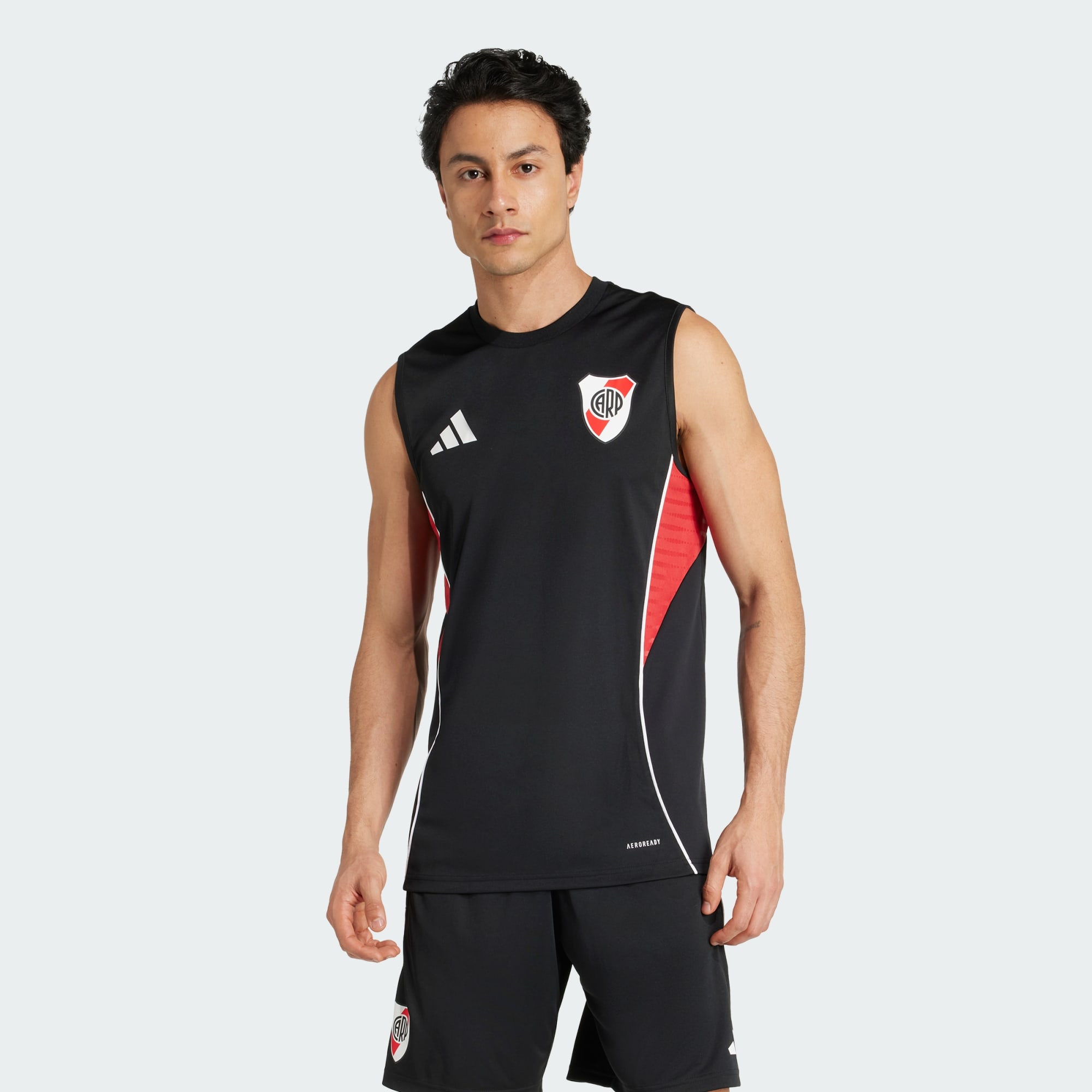Cuando el sol pega fuerte en el césped, entrená como los profesionales con esta camiseta de entrenamiento de River Plate de adidas. Camiseta de fútbol hecha para superar tus límites en la cancha, te mantendrá fresco, seco y concentrado gracias a su diseño sin mangas, paneles de malla y AEROREADY que controla la humedad. El escudo del equipo estampado por termotransferencia deja bien en claro de qué lado estás.