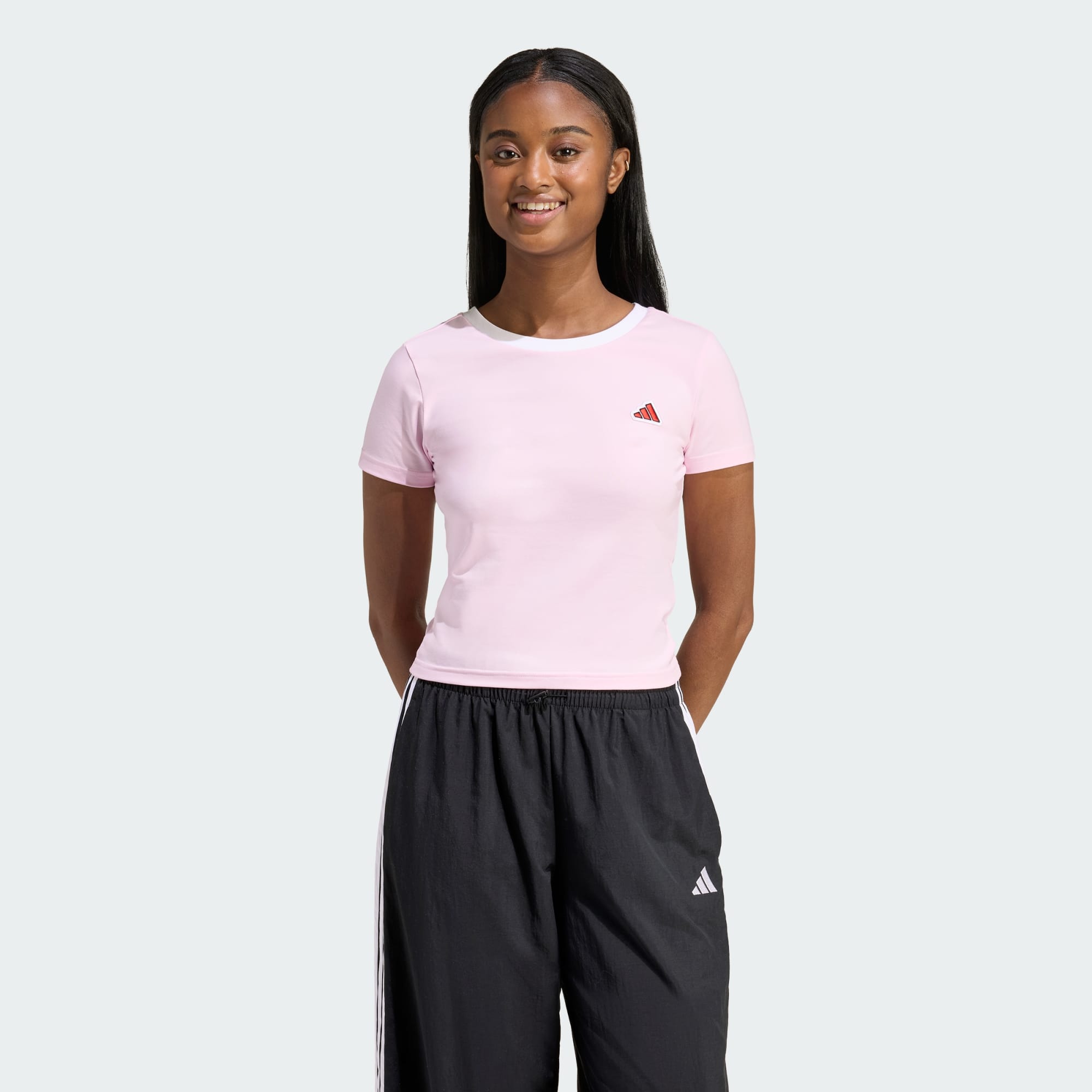La REMERA CORTA GRAPHIC COLOR ICON AJUSTADA añade energía vibrante a tu vestuario con una silueta juguetona y elegante que refleja tu propio carácter único en un look llamativo. Confeccionada con un tejido de punto simple de algodón puro, adidas la ha fabricado pensando en la comodidad y, gracias a su ajuste ceñido, te envuelve en suavidad para que la lleves relajadamente durante todo el día. La serigrafía de caucho multicolor y la etiqueta tejida cosida añaden un toque juguetón a la prenda y le aportan textura, completando una remera de líneas elegantes y energía atrevida.