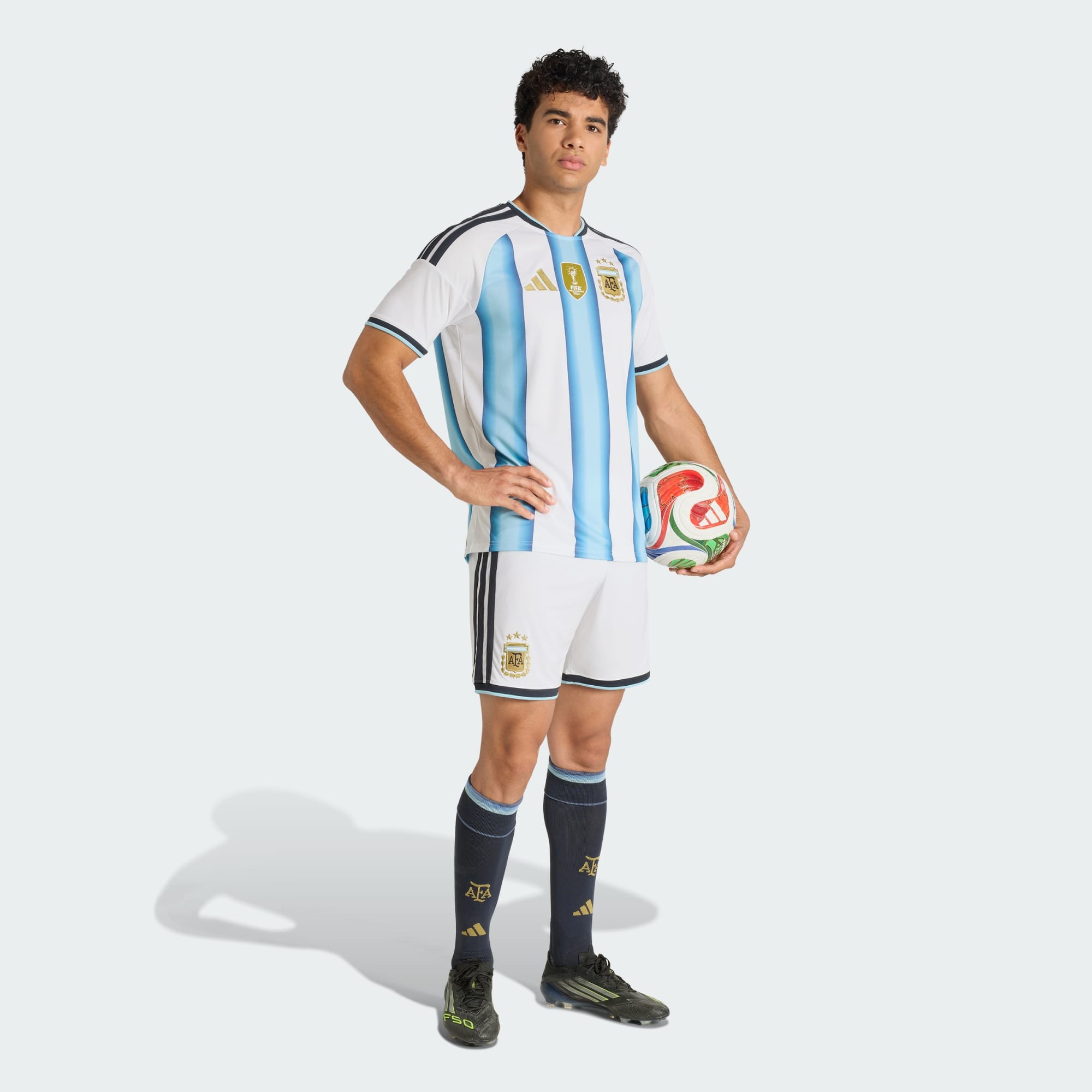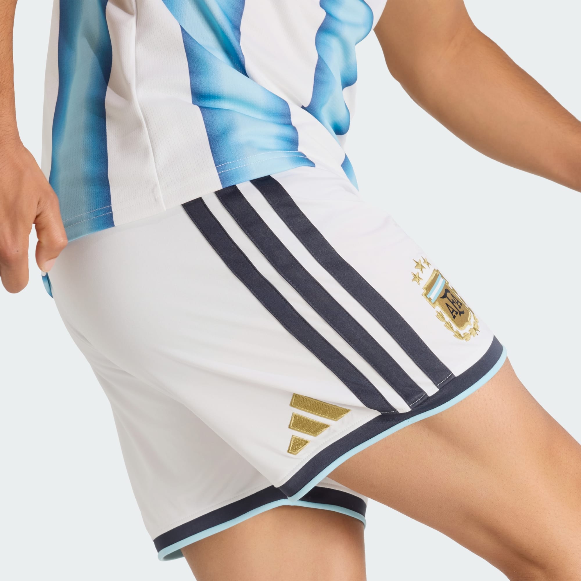 Shorts de fútbol de la Selección Argentina con tecnología Climacool para un rendimiento fresco y seco.