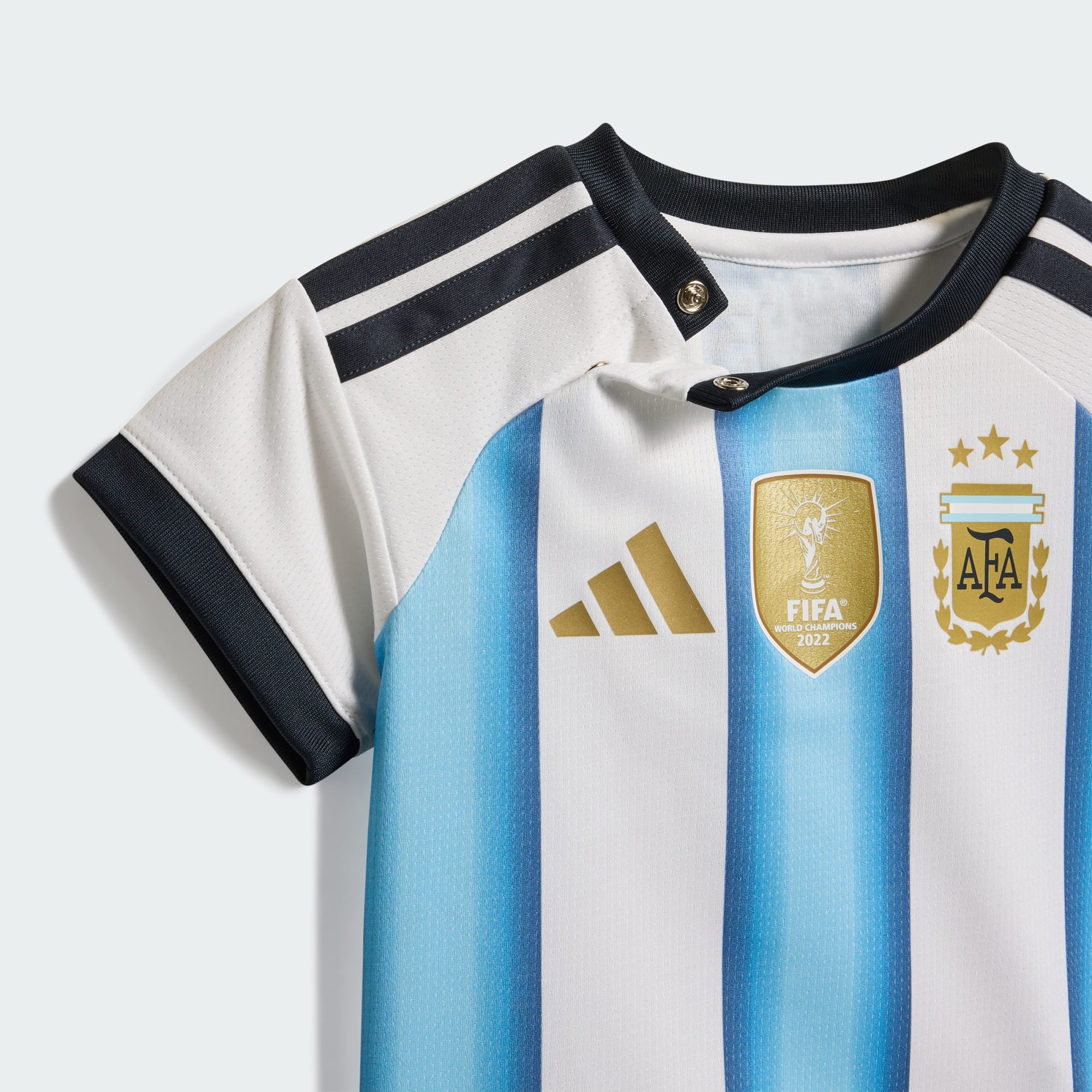 Celebrá el legado futbolístico de la Albiceleste con el Uniforme Titular Selección Argentina 26 para Bebé. Diseñado en honor a los Campeones del Mundo, este kit es un homenaje al ADN futbolístico de Argentina, con un impresionante efecto degradado inspirado en sus tres victorias en la Copa Mundial de la FIFA™. Con ribetes, shorts y medias a juego, este kit para los más pequeños encarna el espíritu del equipo al llevar su tercera estrella a su primer Copa Mundial de la FIFA™. Las llamativas 3 Tiras añaden un toque extra de estilo deportivo, lo que hace de este un gran conjunto para los hinchas de fútbol más pequeños. Fabricado para los más jóvenes, el tejido incorpora la innovadora tecnología Climacool+ de adidas, que absorbe y dispersa el sudor para lograr una experiencia fresca, seca y sin distracciones durante las actividades. Tanto si exploran en el recreo como si animan a su equipo favorito, este kit titular está diseñado para ofrecer comodidad y estilo. Dejá que tus hijos abracen el espíritu del fútbol con este emblemático kit.