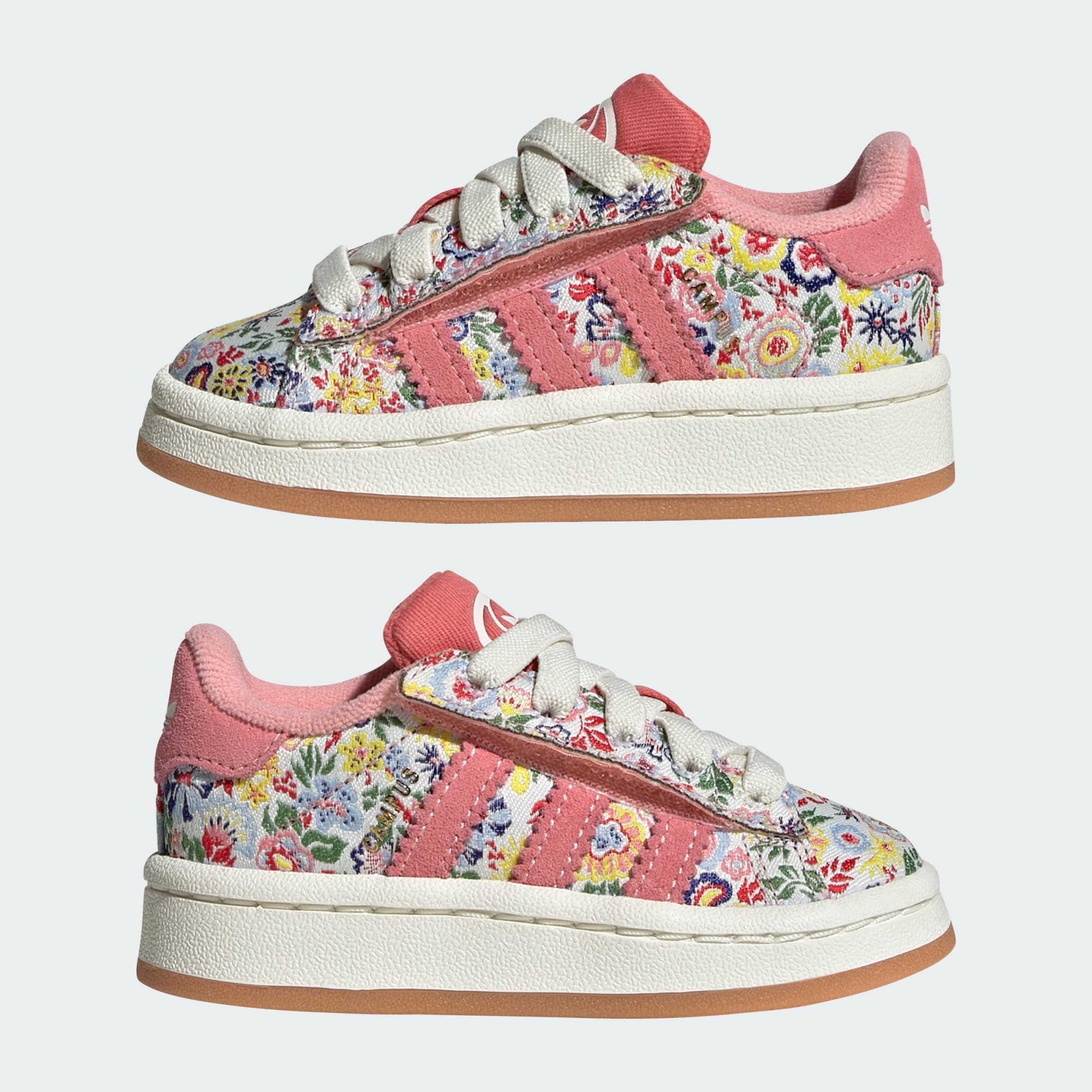 Liberty London es una marca británica conocida por sus llamativos estampados florales. Las zapatillas adidas Campus 00s de bebé tienen un colorido estampado inspirado en los saturados estampados florales de la década de 1920. Pensadas para la practicidad, estas zapatillas de corte bajo tienen un exterior slip-on sin cordones y cordones elastizados para un calce seguro.