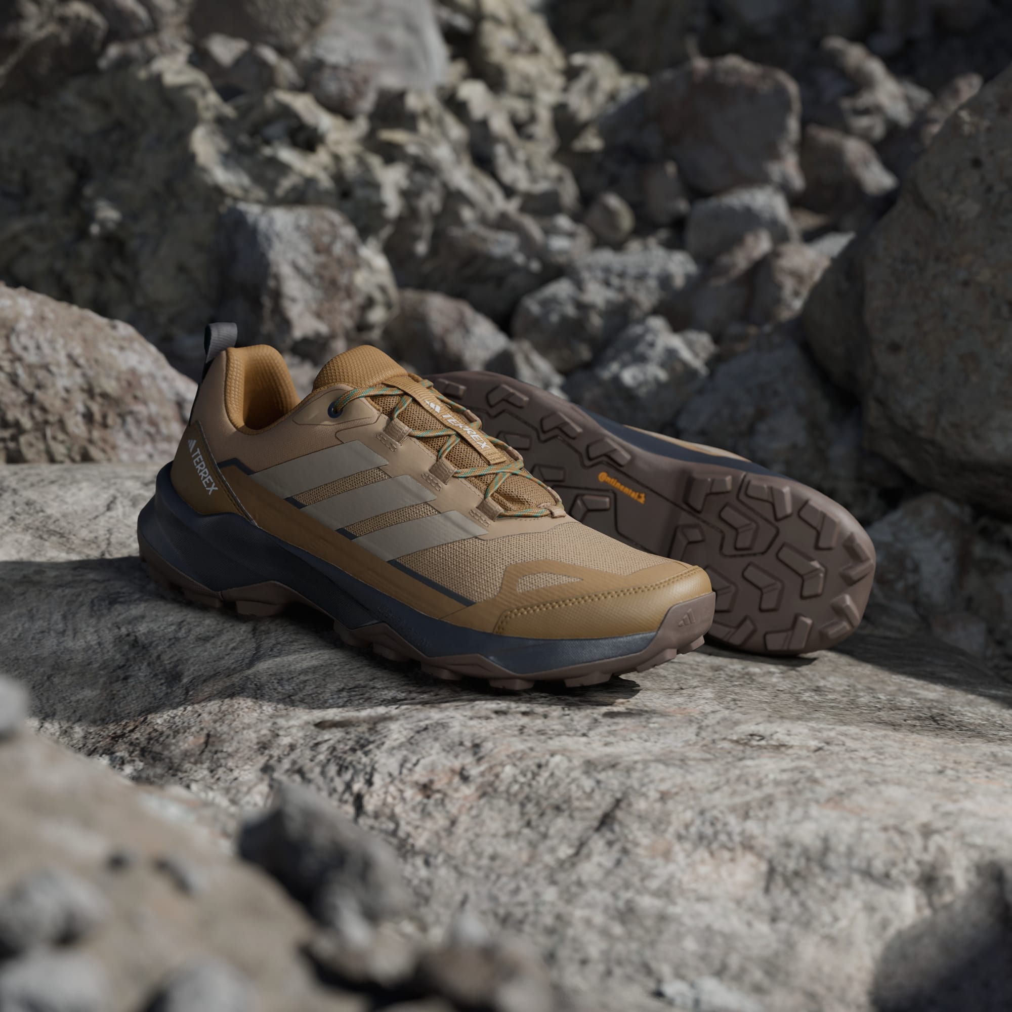 Desde el inicio del sendero hasta la cresta alpina, estas botas de montaña adidas te mantienen en movimiento con absoluta comodidad. La entresuela LIGHTMOTION EVA les confiere una sensación de rapidez y ligereza, a la vez que proporciona soporte y amortiguación en terrenos resistentes. El exterior duradero de tejido antidesgarre con superposiciones añadidas resiste los senderos ásperos y rocosos, mientras que la suela de caucho Continental™ con tacos se agarra en todas las condiciones para que puedas explorar con confianza.
